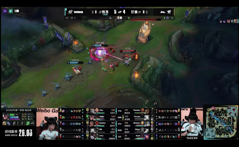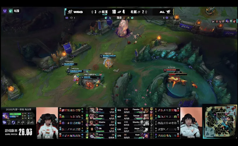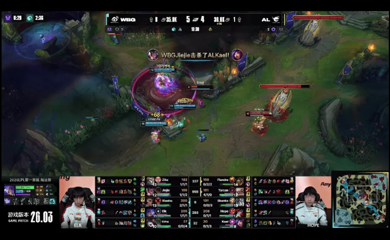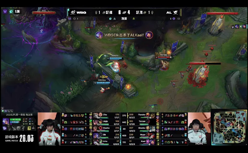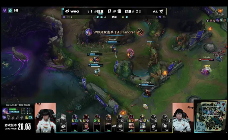 23分钟,WBG中路发难,突进越塔击杀AL双C